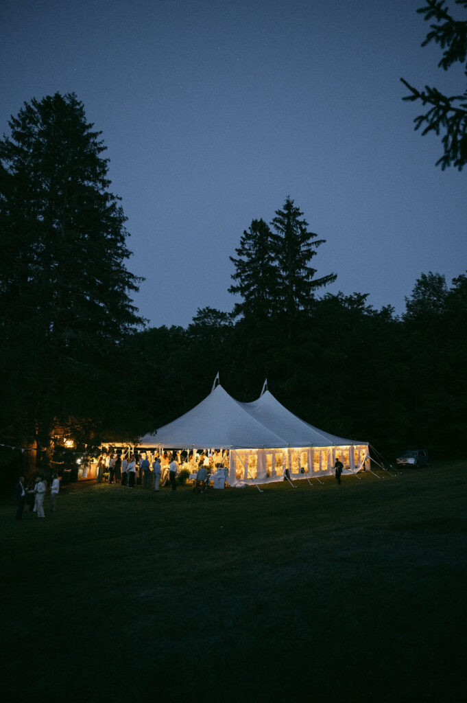 As the sun dipped toward the lake, guests soaked in that soft, pastel summer light the Adirondacks are known for. The estate takes on a different magic after sunset; lanterns glowing, music drifting across the water, the reflections shifting as the sky deepens. It’s an atmosphere that makes a wedding feel like an entire experience rather than a single event.
