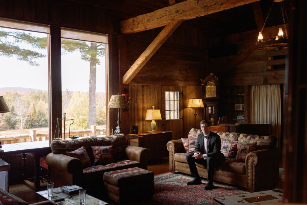 Molly spent the morning at the estate. Meanwhile, Andrew got ready at River Ranch. This is where the reception would later take place. With it’s property tucked along a river, River Ranch is one of those Lake Placid wedding venues that offers both structure and openness. It’s a space that can hold a celebration while still feeling connected to it’s surroundings.